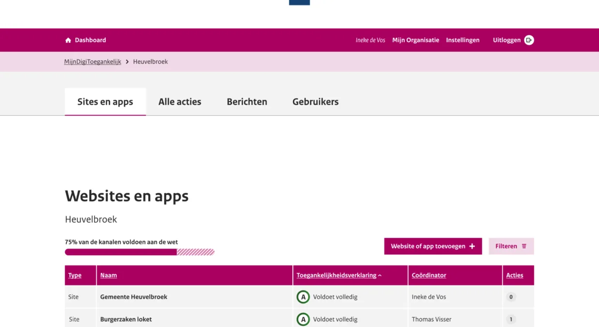 Met MijnDigiToegankelijk krijgen overheidsorganisaties één centrale plek om de toegankelijkheid van hun websites en apps overzichtelijk te beheren en te volgen.