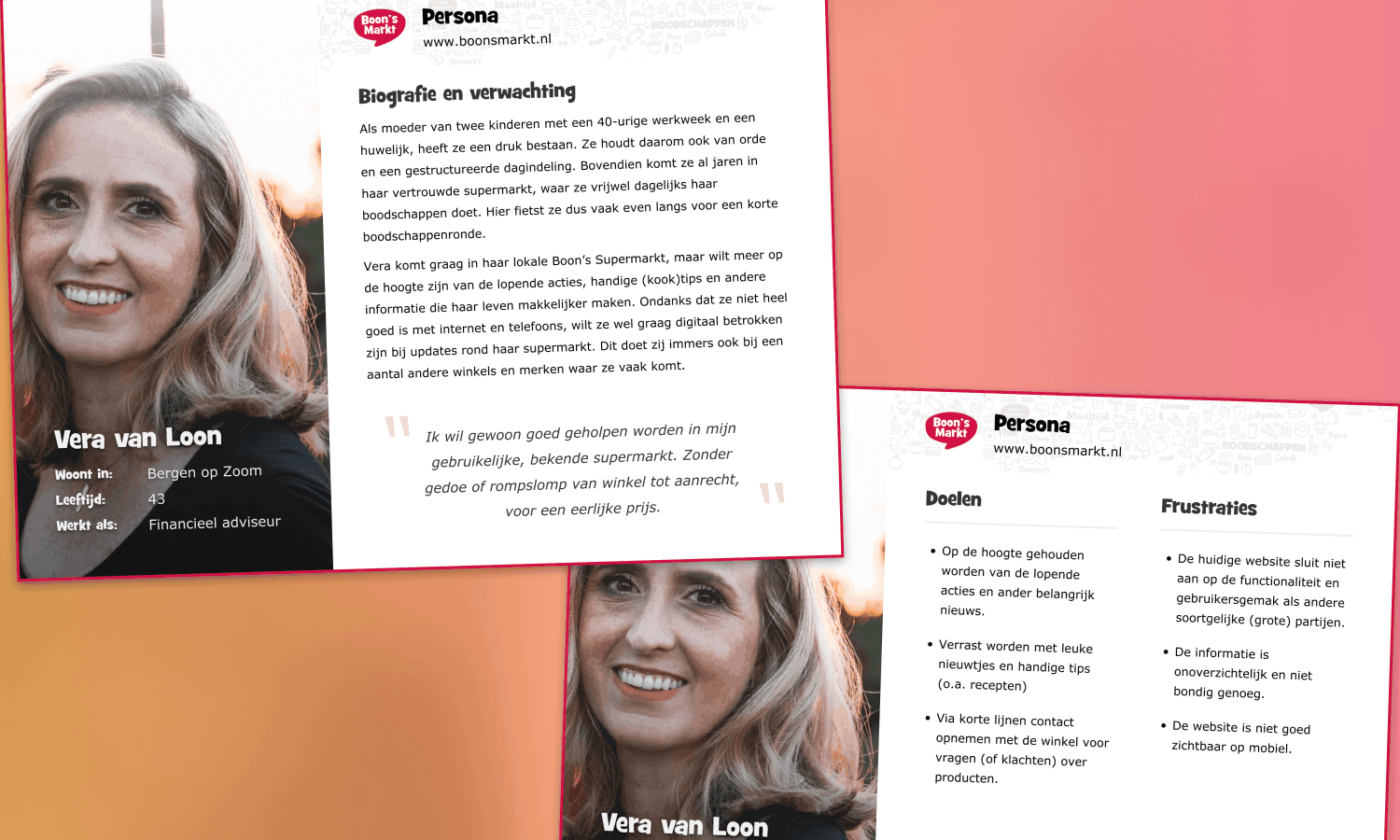 Na de UX discovery sessie hadden we een schat aan waardevolle informatie in handen. We creëerden zo gedetailleerde persona’s voor alle doelgroepen, zodat de merken Boon’s Markt en MCD Supermarkten beter konden begrijpen wie hun gebruikers zijn en waar zij behoefte aan hebben. Ook stelden we een uitgebreide customer journey op, die zowel de huidige als de gewenste klantreis in kaart bracht. Daarnaast gaven we advies over welk CMS-platform het meest geschikt was voor de klant. Hierbij bevolen wij Craft CMS aan voor een multi-site strategie voor een efficiënte beheer van beide websites.