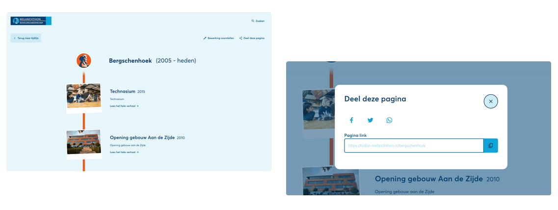 - Implementatie van intuïtieve navigatiemogelijkheden waardoor bezoekers eenvoudig door de tijdlijn kunnen bladeren.