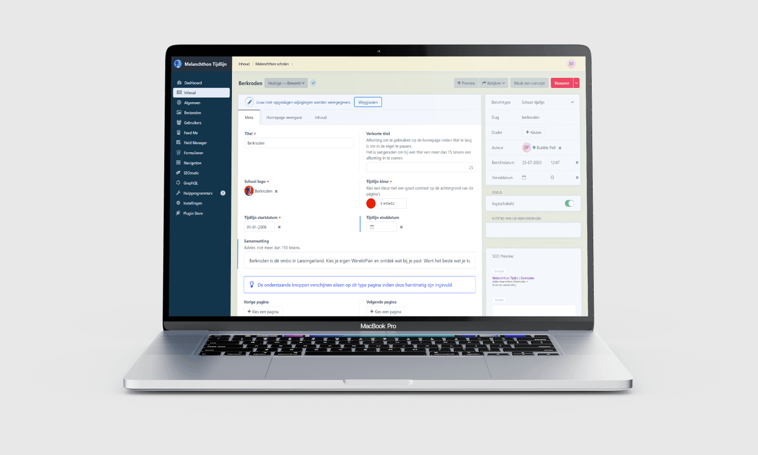 De website is gebaseerd op Craft CMS 4, zodat alle elementen in de site bewerkbaar zijn