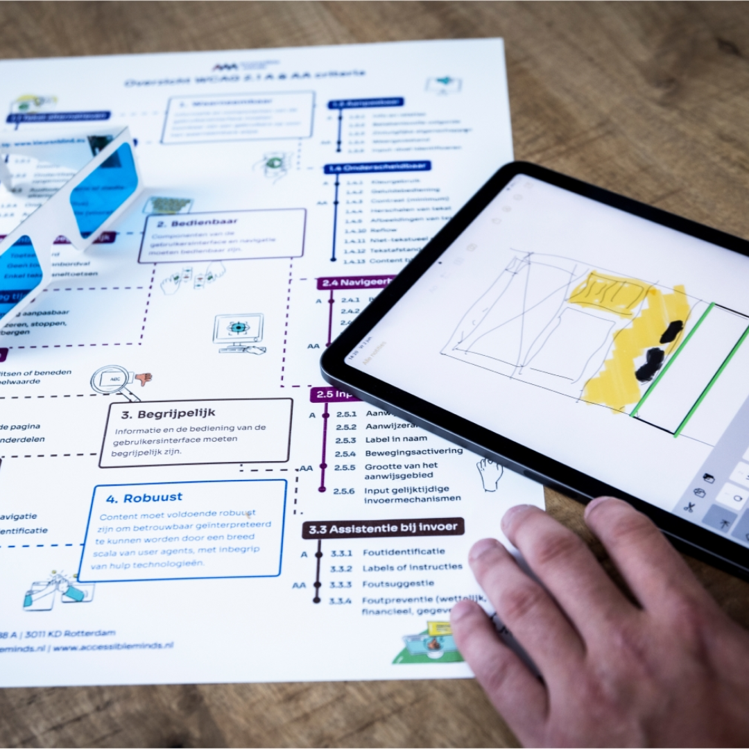 - Verlies nooit meer de belangrijkste WCAG-criteria uit het oog. Onze poster dient als jouw betrouwbare geheugensteuntje.